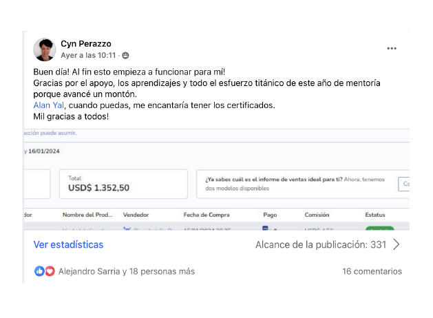 Para que comprendas cómo este programa te llevará de la mano a que generes tus primeras ventas y logres generar una constancia en tus resultados, cómo ya lo han hecho muchos de nuestros estudiantes.